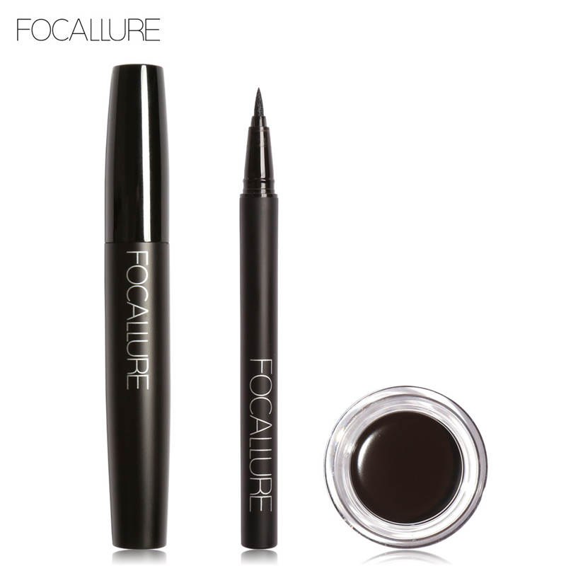FOCALLURE Pro 3Pcs Eyes Daily Makeup Use Black Eyeliner Mascara and Eyebrow Cream