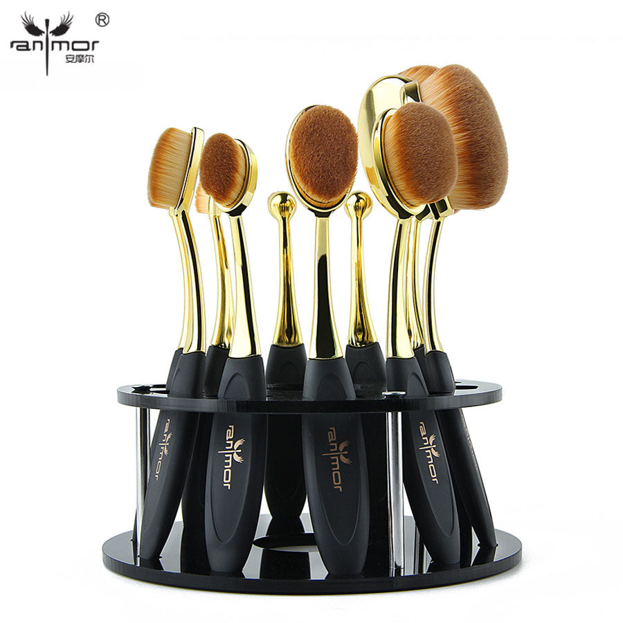 10 Pieces Oval Makeup Brush with Rack